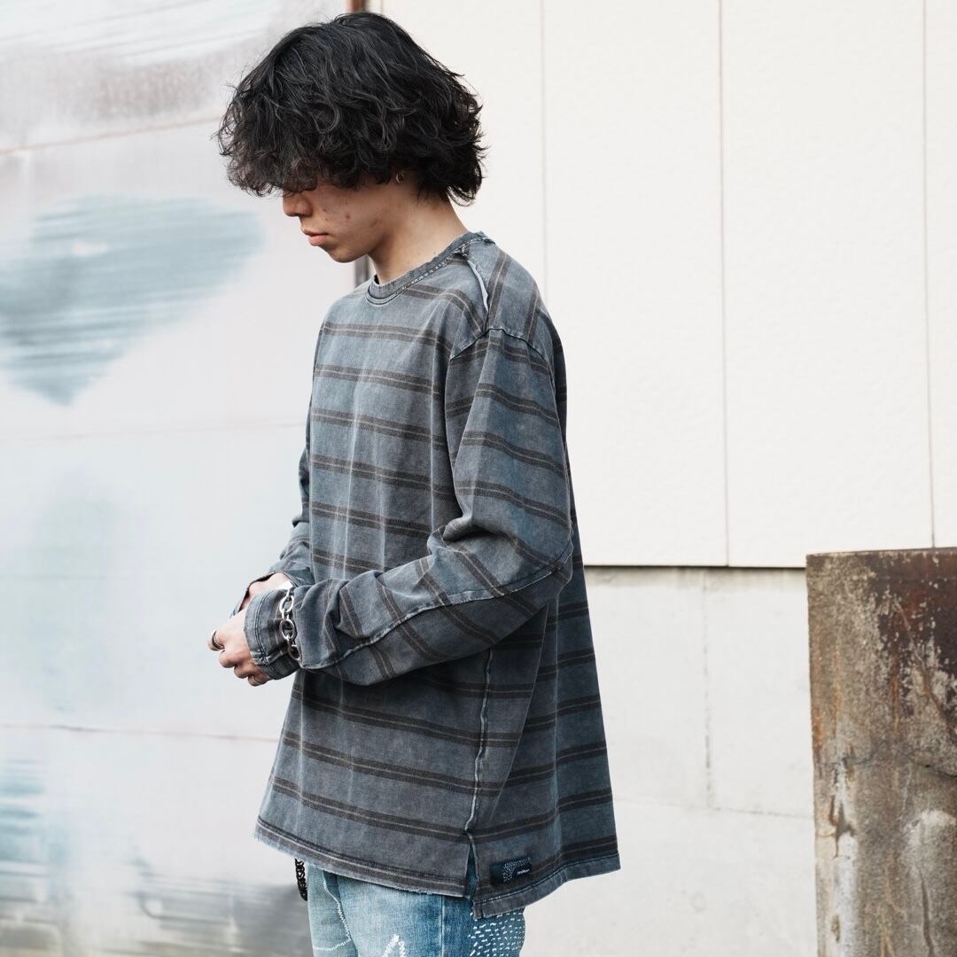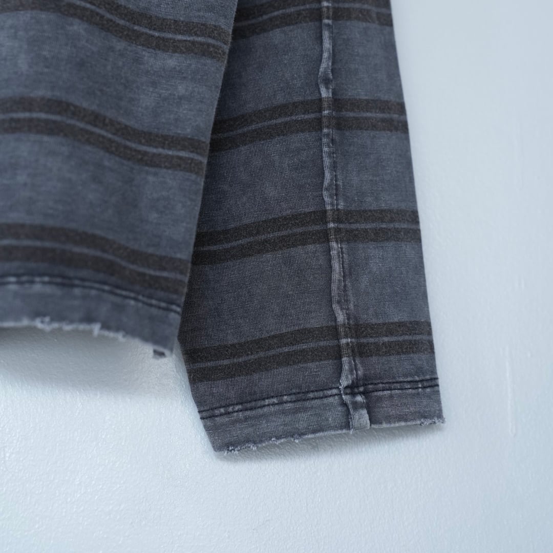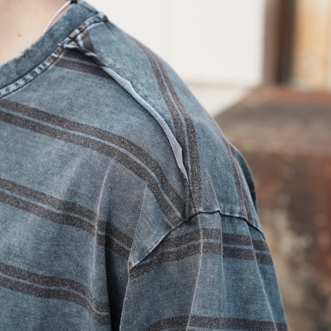 コットン、化繊がミックスされた天竺を使用しています。ダメージ加工を施しています。