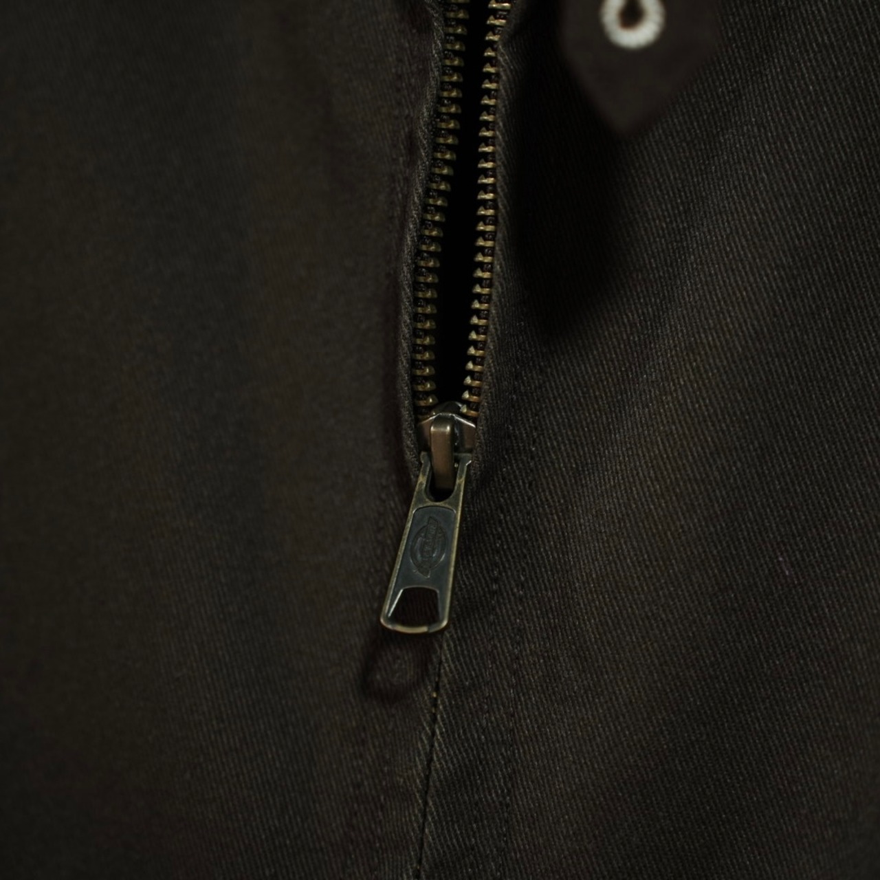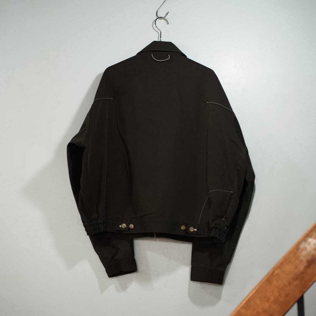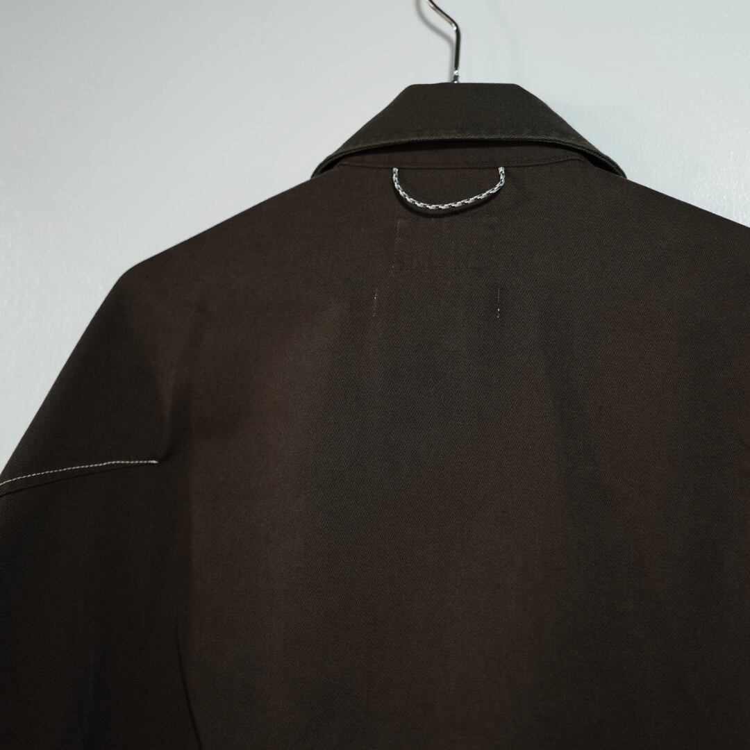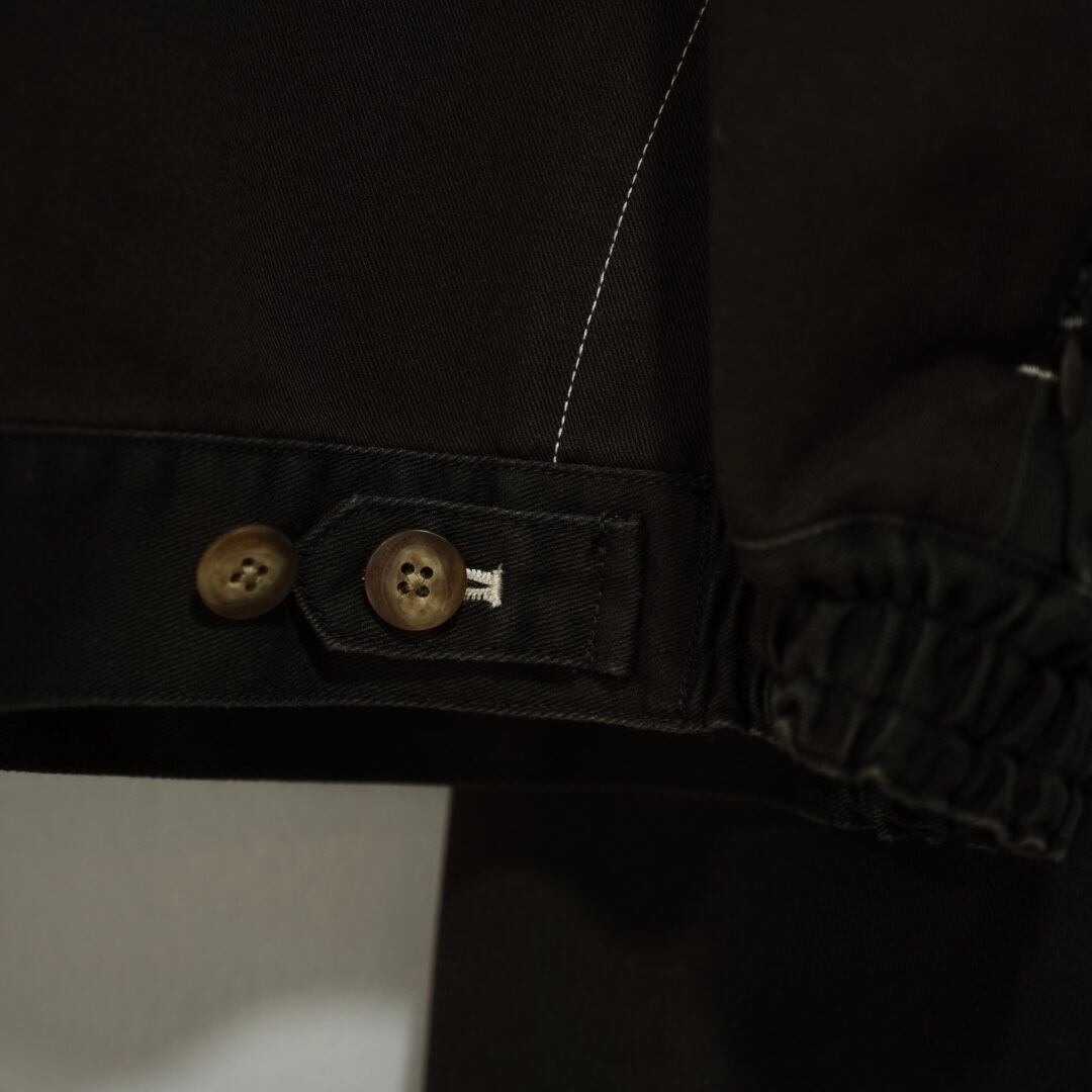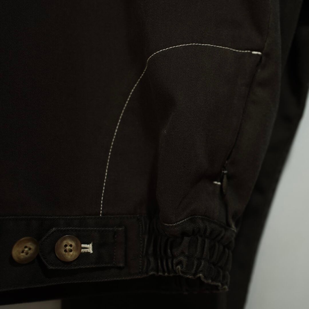 DICKIES® “EISENHOWER JACKET” をべースとし、サイズ感、ディテールなどをアレンジしました。肩幅、身幅は大きくリラックスフィットになります。右後ろ見頃には隠しポケットをつけて、細かい使用にこだわりました。特有の光沢感と滑らかさを持ち合わせた2種類のT/Cツイル地を使用し、パーツごとに切り替えています。ウォッシュ加工を施す事で2種類の異なる色褪せや、ワークウェアらしい愛着ある風合いにしています。