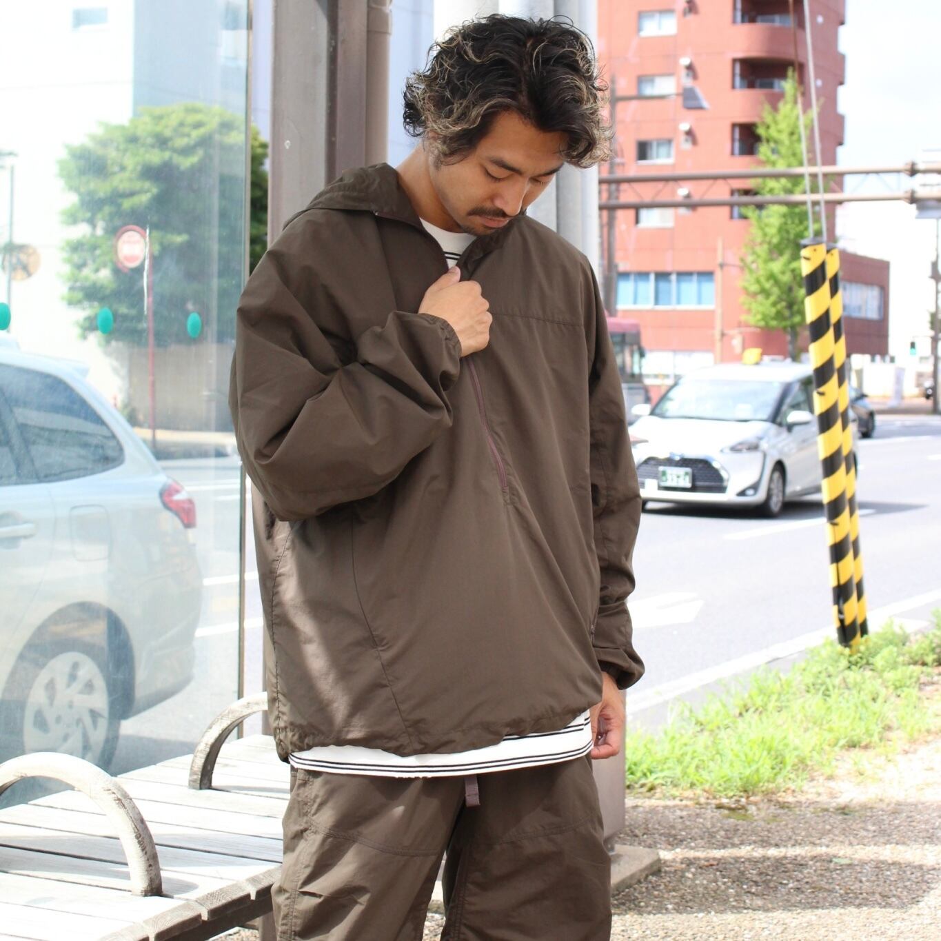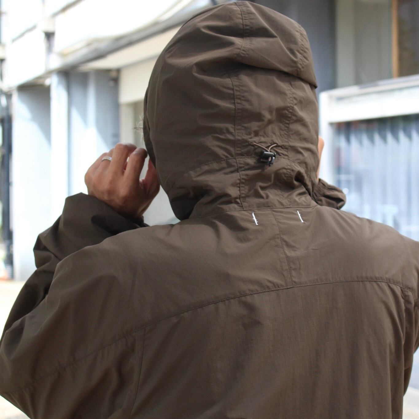 製品にウォッシュ加工を施し、程よいシワが出るよう仕上げています。身幅にゆとりあるプルオーバータイプ。裏地をつけて防寒性も備えています。