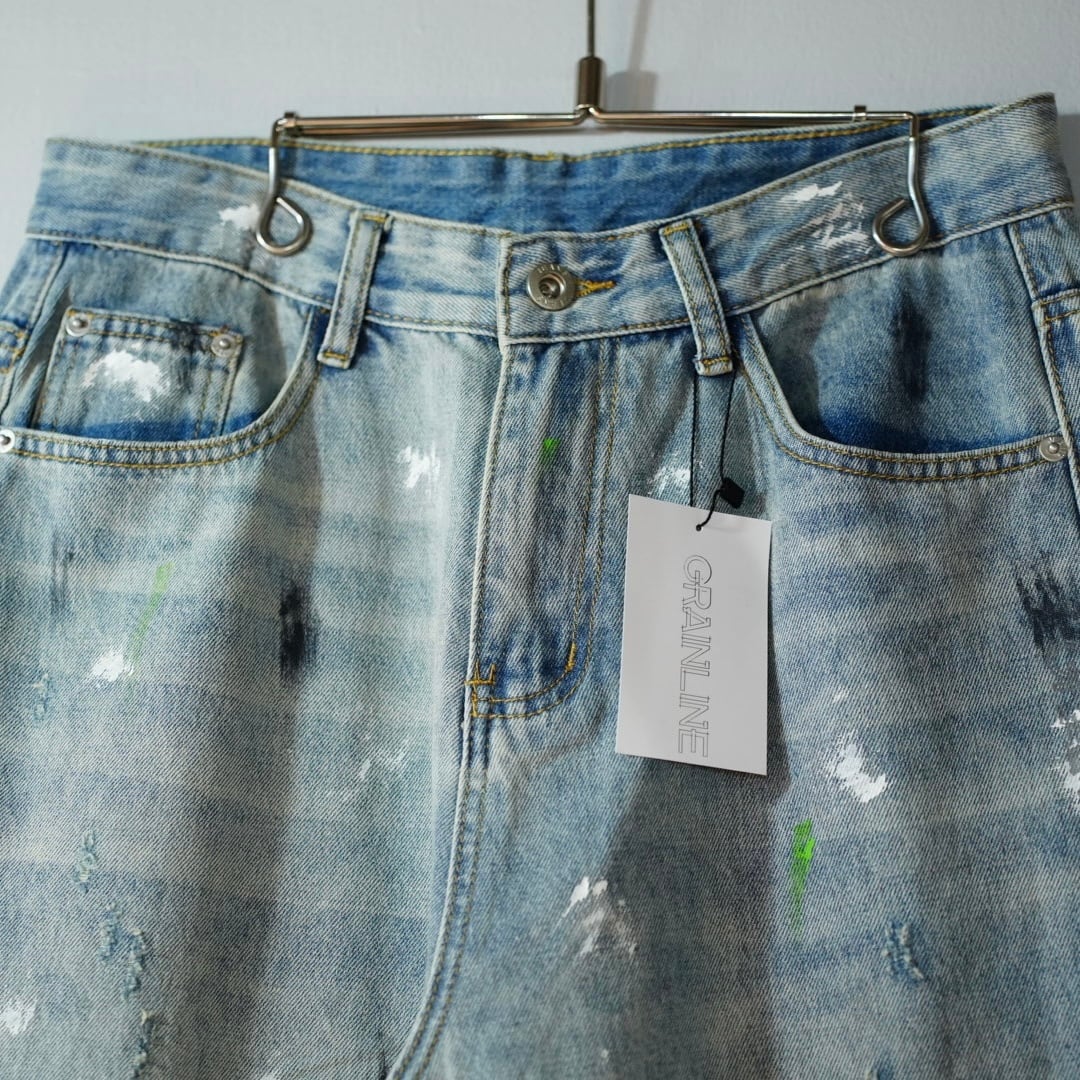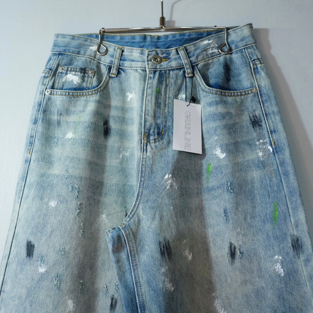 GRAIN LINE wide damage denim pants
