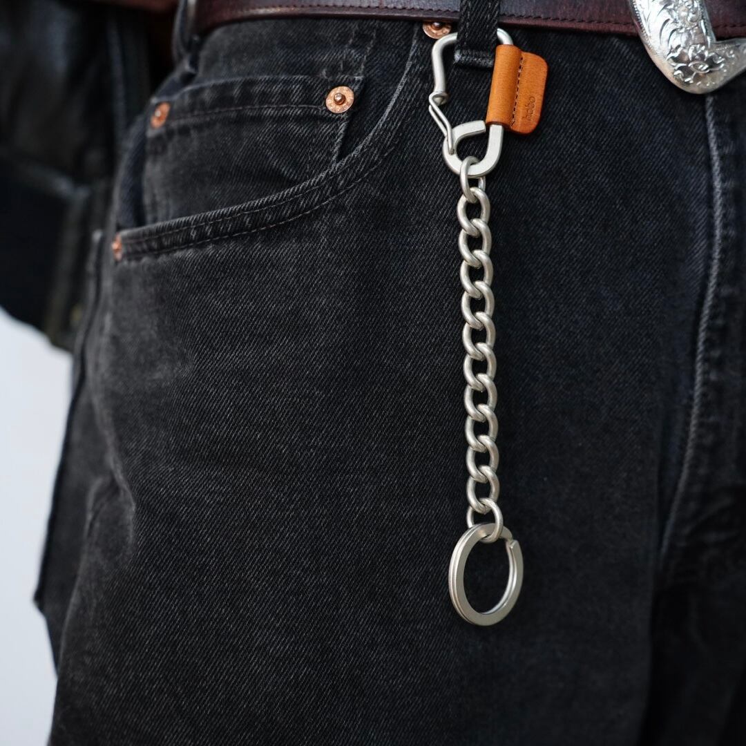 ブラス製のカラビナにチェーンを連結させた艶なしタイプのキーチェーンになります。