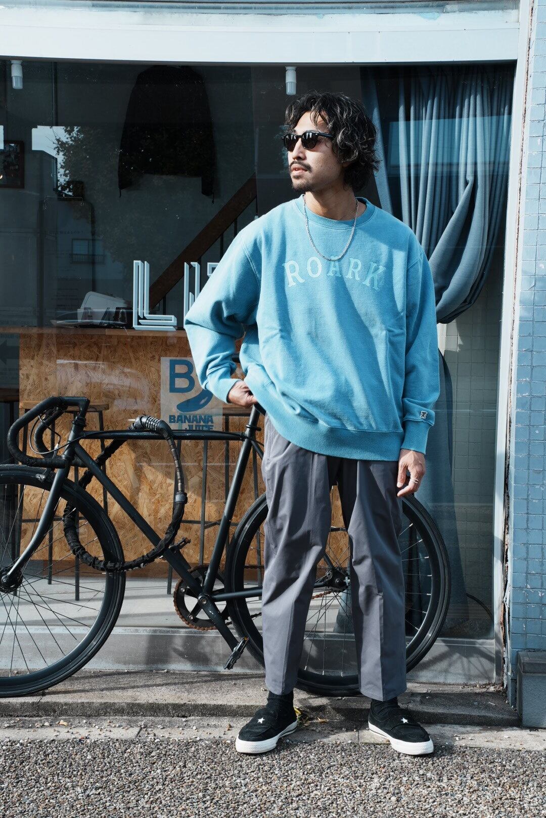 ウォッシュ加工を施し古着のような風合いに仕上げた12.5ozのクルースウェット。