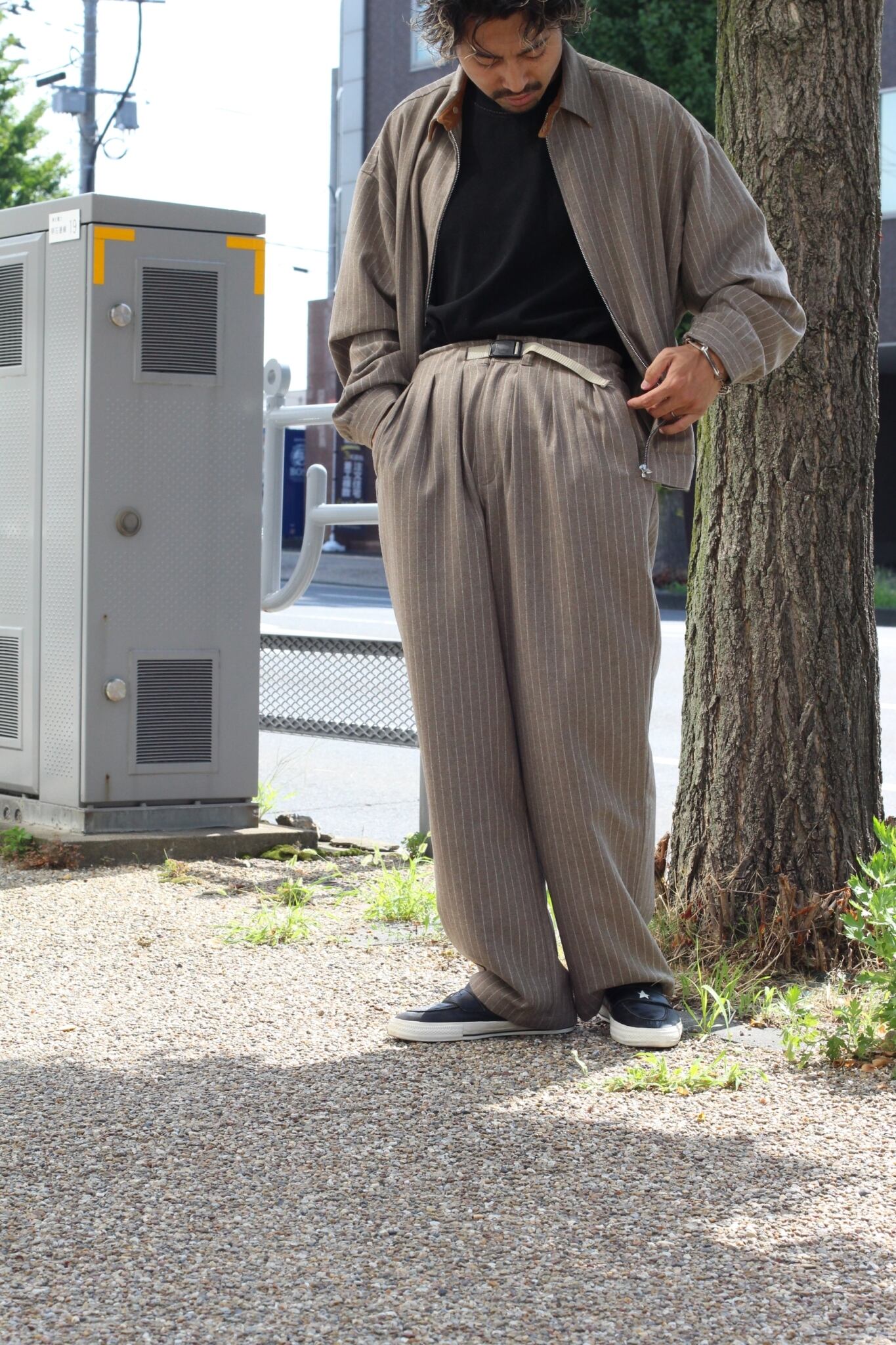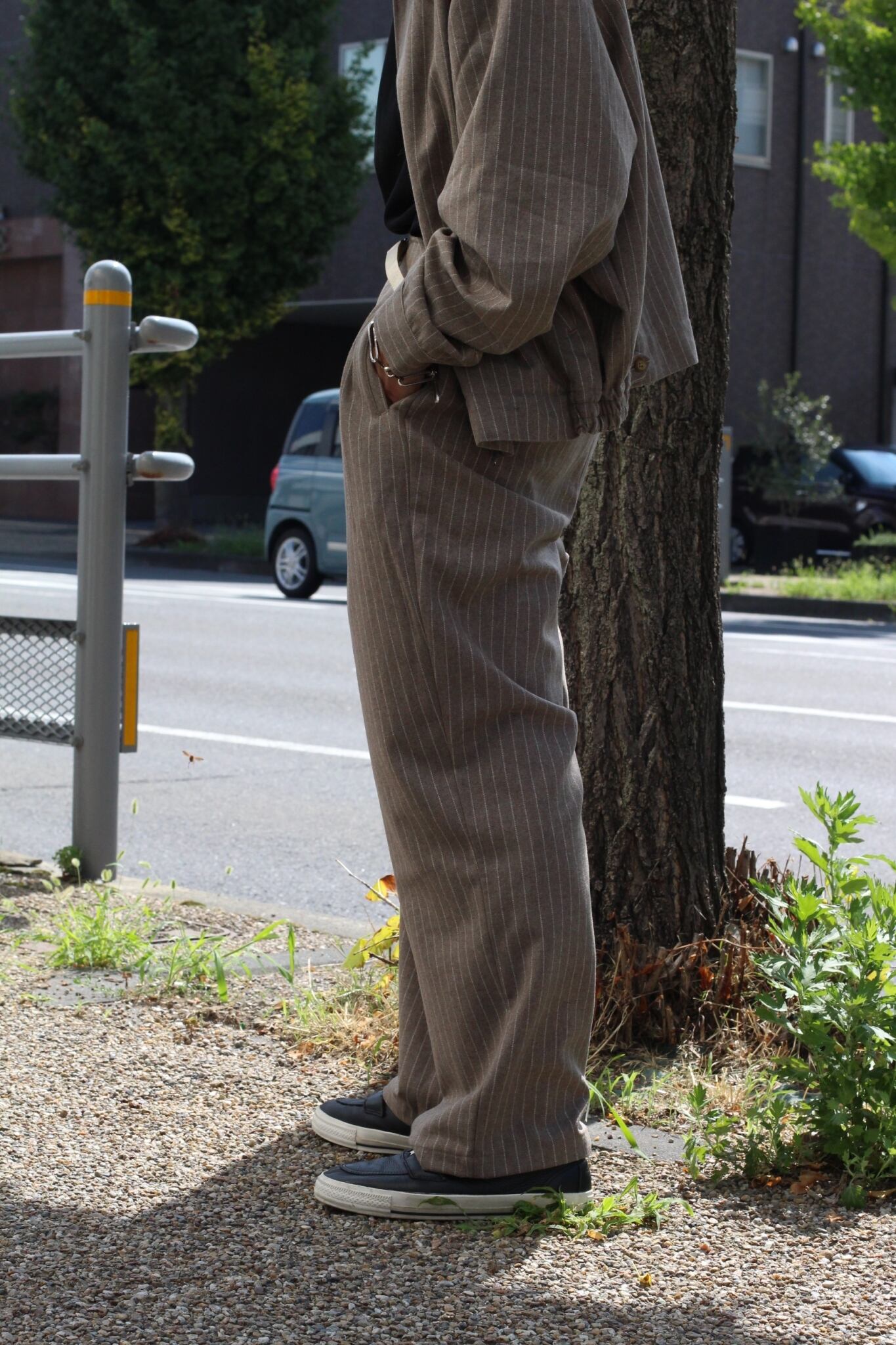 Sand Waterr CRAFTED 3 TUCK SLACKS / WOOL MIX STRIPE TWILL