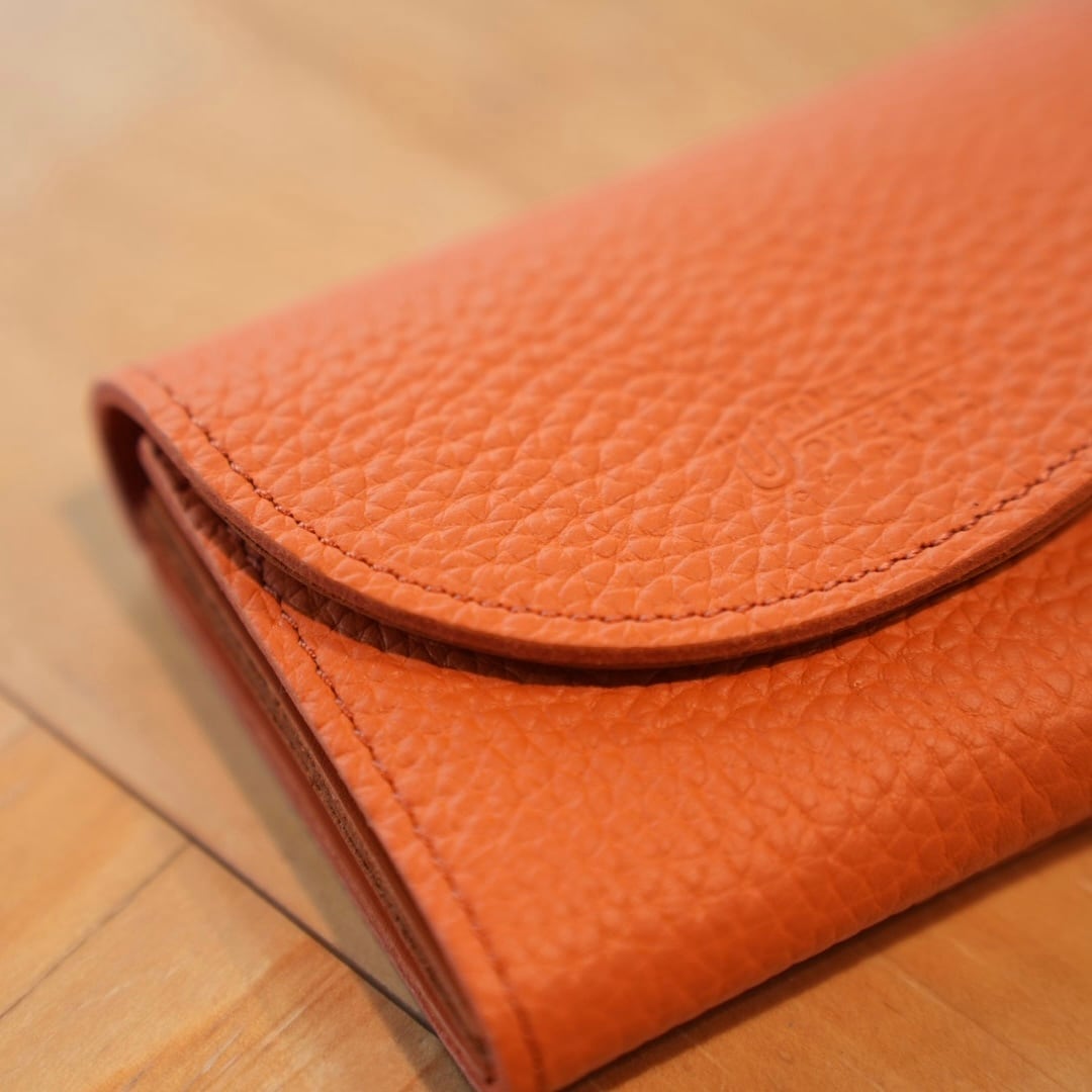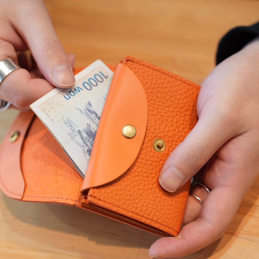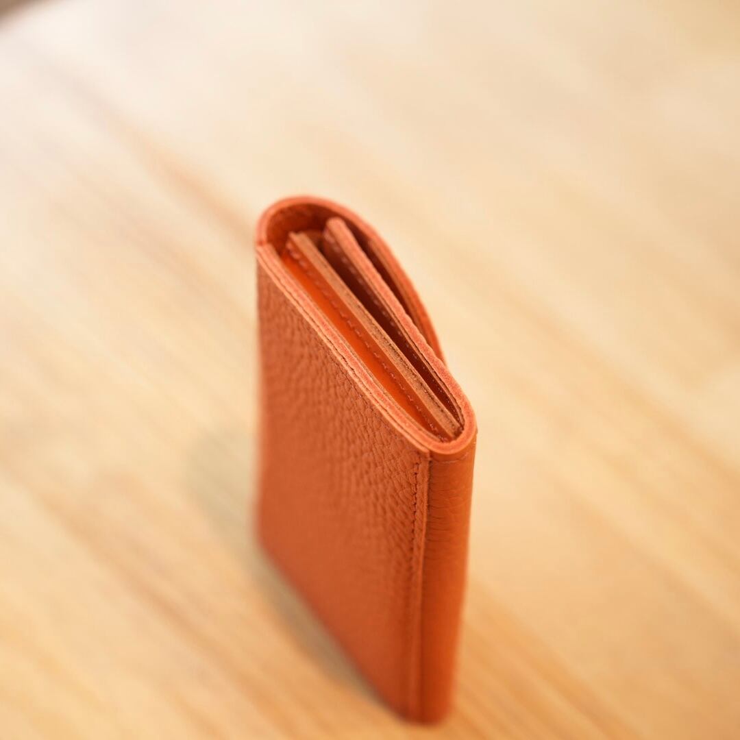 二つのフラップでコインと少しの折り畳んだお札が入る人気の形です。