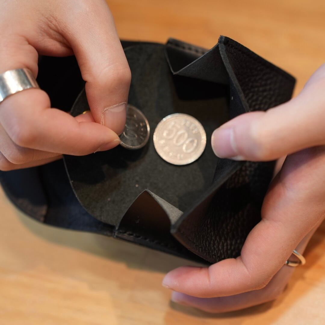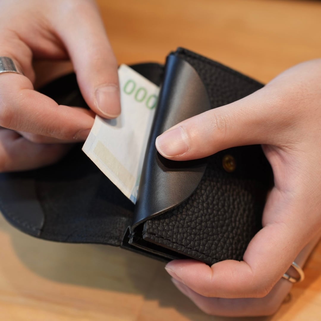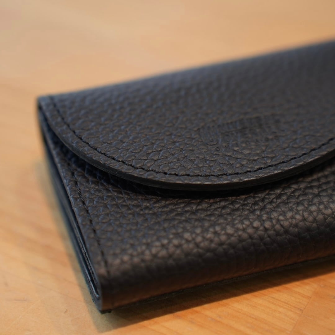 二つのフラップでコインと少しの折り畳んだお札が入る人気の形です。