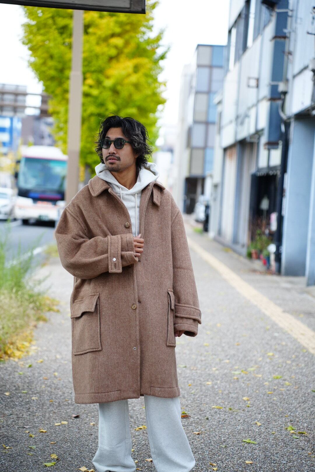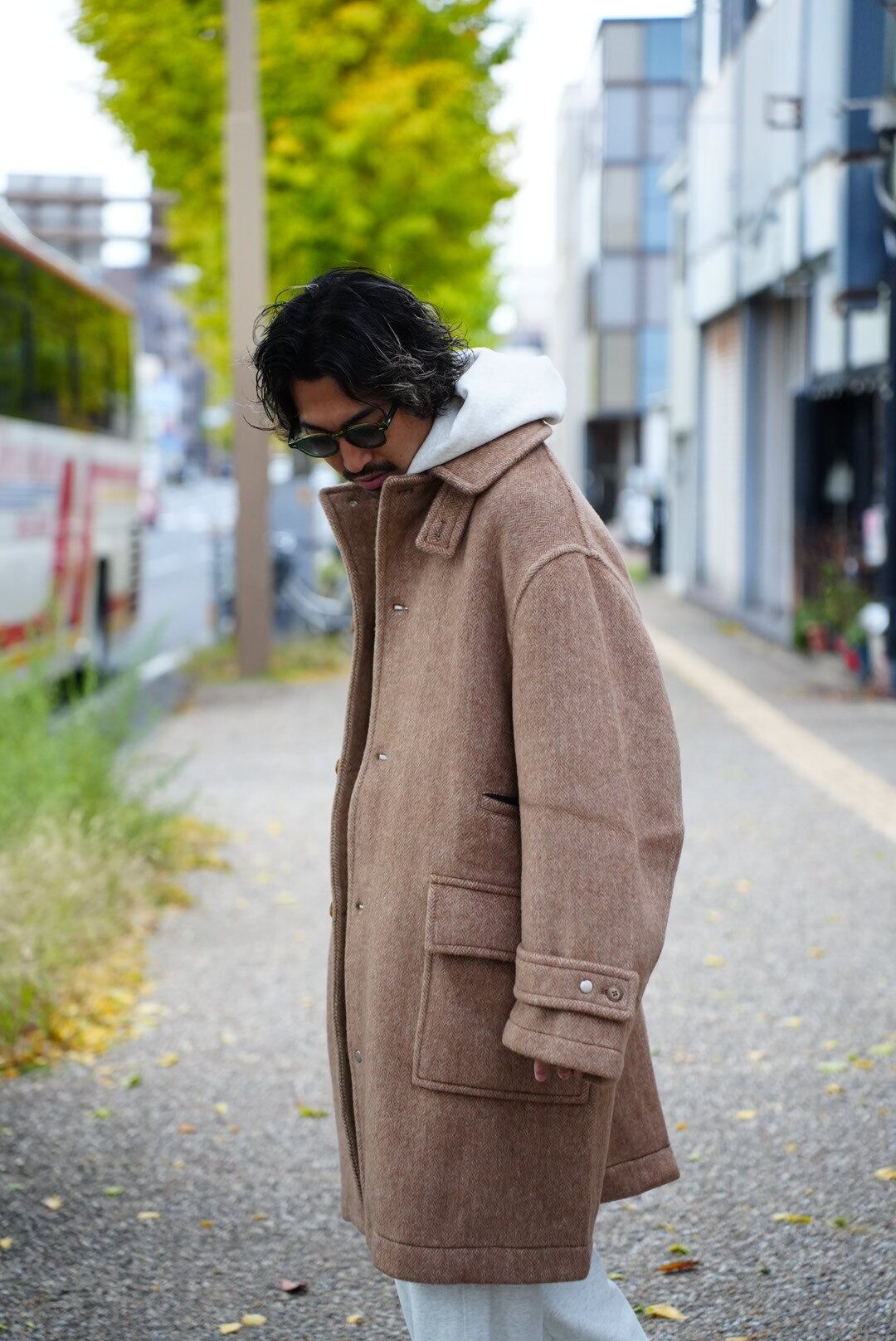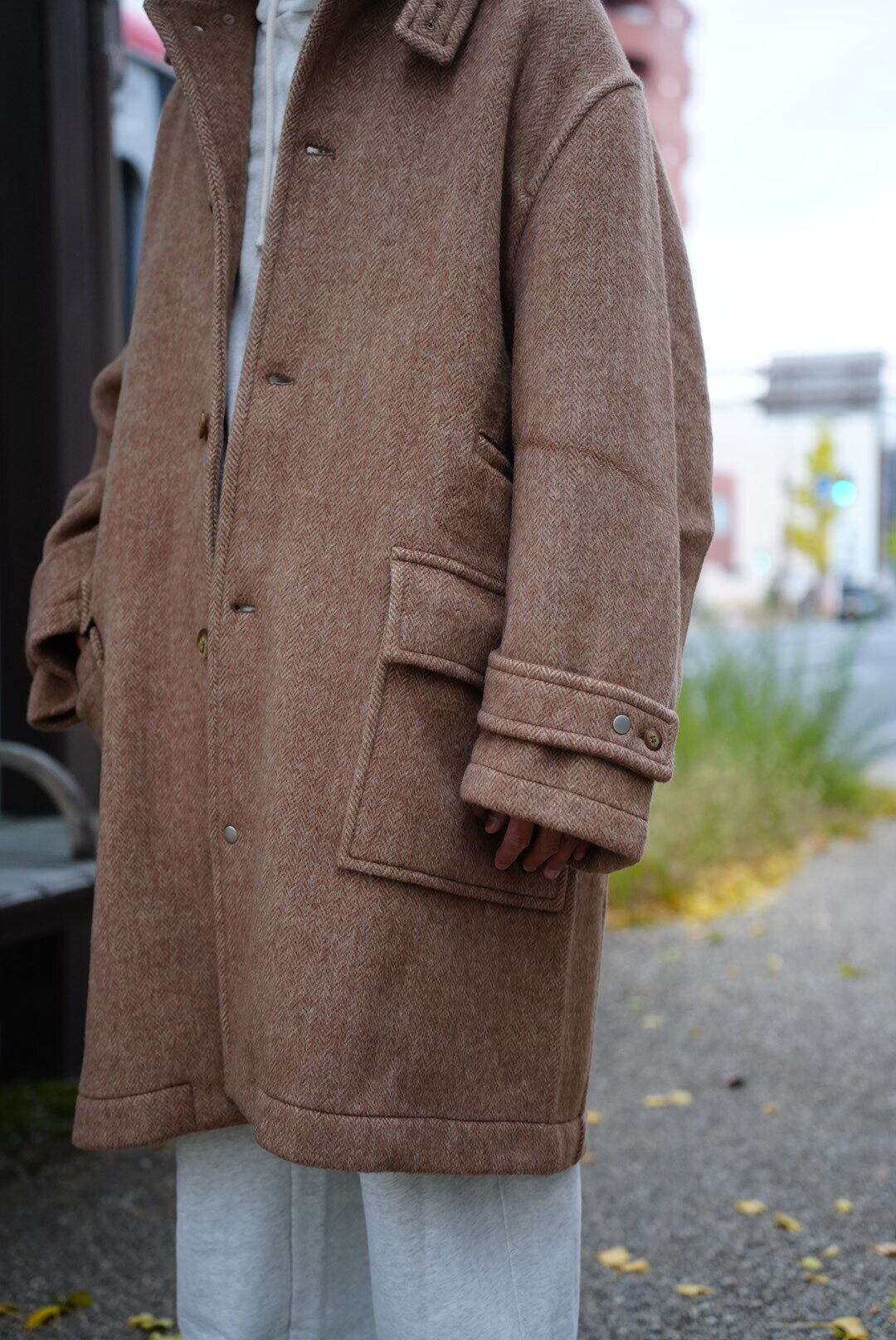 RESEARCHED CITY COAT / ALPACA MIX MELTON HERRINGBONE