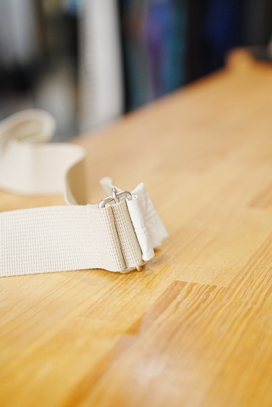 金属製のバックルを配したストラップはプルを引くだけで容易な調節が可能です。