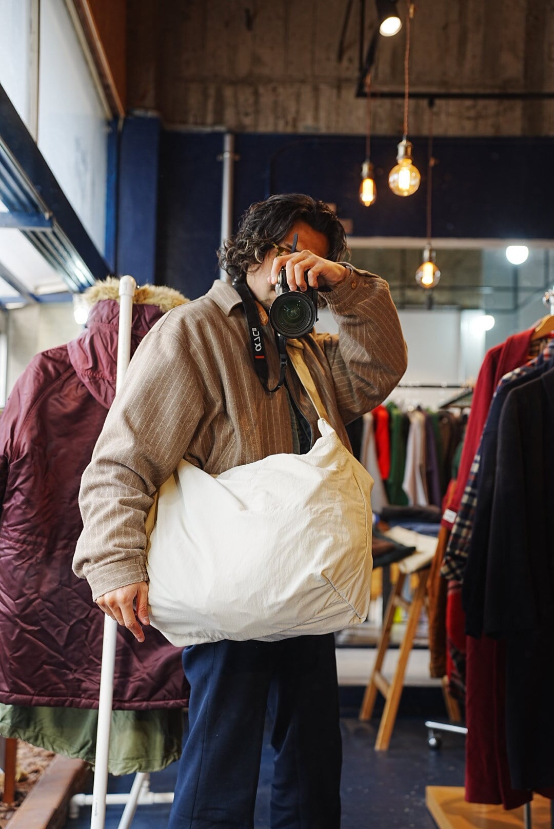 風呂敷や手ぬぐいを縫い合わせ、鞄の代わりとして使われていた「あずま袋」から着想を得たワンショルダーバッグのLサイズになります。