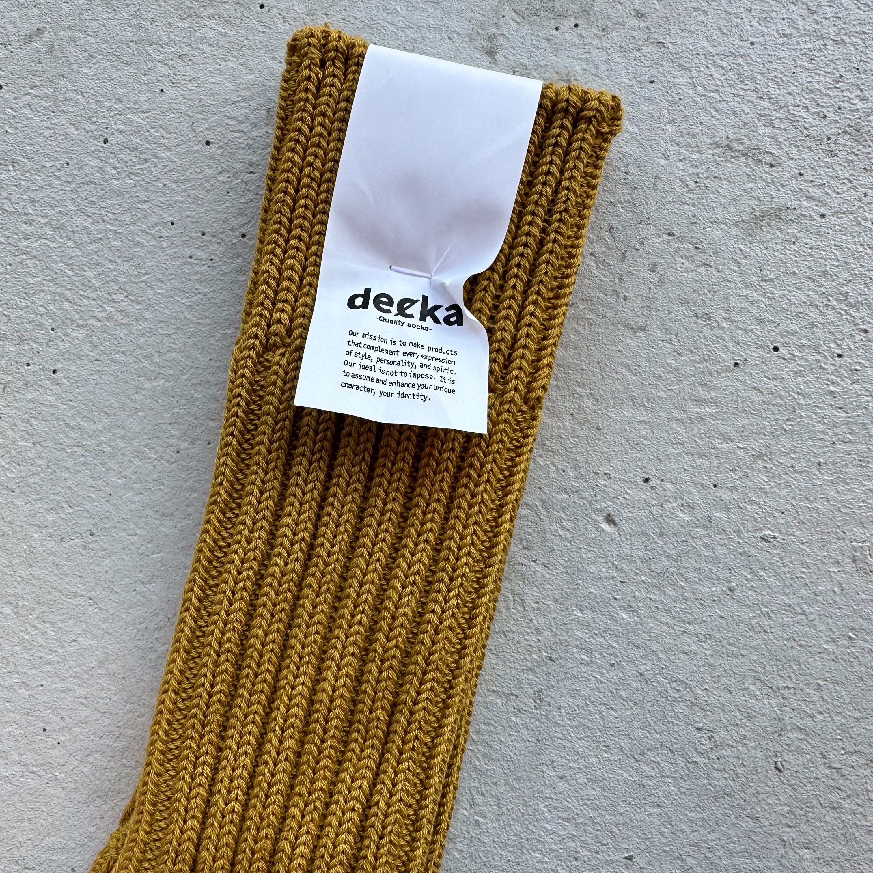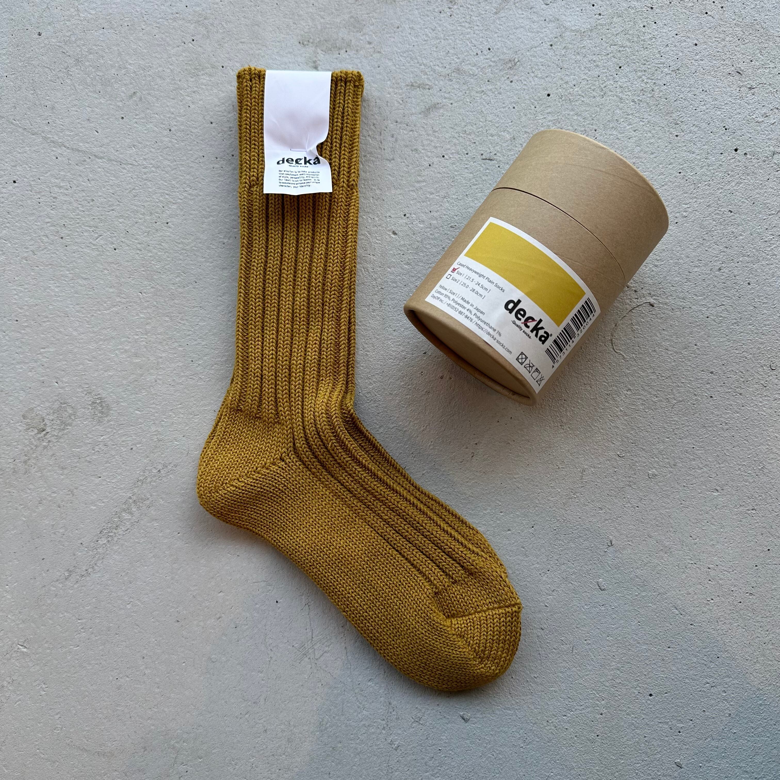 旧式の機械を使用してゆっくりと丁寧に編み立てて作られたdeckaのリブソックス。