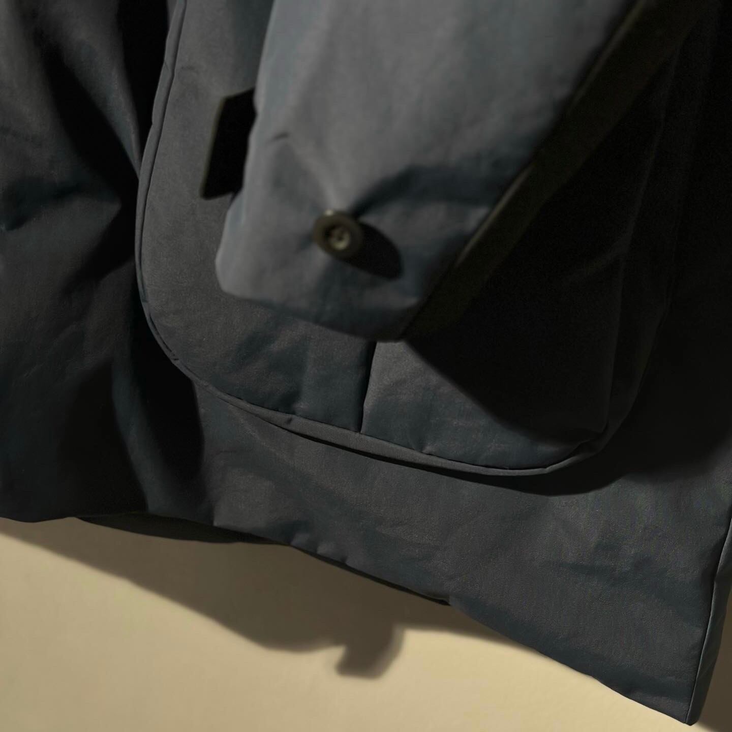 品名(CARGO)の通り、一般的なコートより収納性を拡張しており、デザインポイントとなっているサイドのマチ付きパッチポケットはA4サイズの書類がそのまま入る多きさになっています。